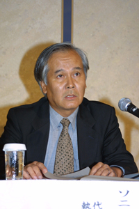 写真は、ソニーコミュニケーションネットワークの山本社長。7/25に都内ホテルで開かれた新サービス発表会での様子。